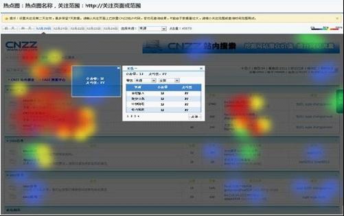 CNZZ統(tǒng)計(jì)工具在設(shè)計(jì)及研發(fā)上更加注重用戶體驗(yàn)與實(shí)用性,用戶只需將關(guān)注的受訪頁(yè)面鏈接添加到“熱點(diǎn)圖”功能中,并保證該頁(yè)面已成功放置CNZZ“站長(zhǎng)統(tǒng)計(jì)”代碼,第二天即可查看“熱點(diǎn)圖”相關(guān)數(shù)據(jù)情況。在申請(qǐng)開(kāi)通“熱點(diǎn)圖”功能后,用戶可同時(shí)關(guān)注十個(gè)熱點(diǎn)頁(yè)面。打開(kāi)某一頁(yè)面熱點(diǎn)圖,興趣點(diǎn)展現(xiàn)一目了然,圖中紅色區(qū)域表示點(diǎn)擊熱度最高,橙色、黃色、綠色次之,而藍(lán)色區(qū)域則表示點(diǎn)擊熱度最低。